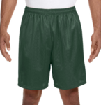 A4 Adult 3.4 Ounce 7 Lined Tricot Mesh Short. 100% Polyester Mesh body, 3.4 ounce. 100% Polyester liner, 2.5 ounce. Moisture wicking. Odor resistant. Stain release. 1.5 Covered elastic waistband with inside draw cord, 7 inseam.